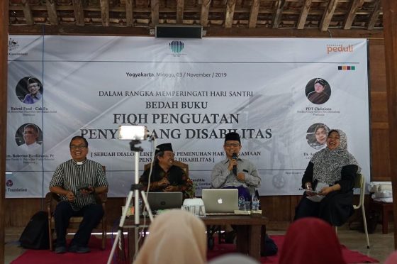 Bekerja sama dengan PW Fatayat NU DIY dan Bumi Cendikia Yogyakarta, PR Yakkum mengadakan Dialog Lintas Iman dan Bedah Buku Fiqih Disabilitas untuk memberikan kabar baik bagi khalayak bahwa orang dengan disabilitas saat ini sudah bisa melakukan kegiatan keagamaan dengan layak dan setara dengan yang lain. (Lokasi: Yogyakarta | Mitra Payung: PR Yakkum | Foto: PR Yakkum | November 2019)">